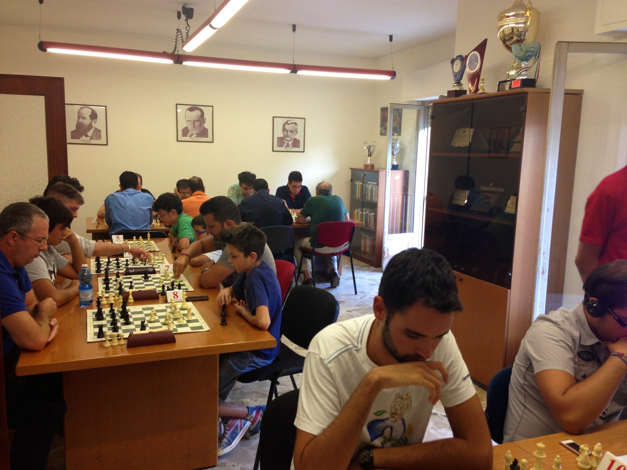 Centro Scacchi Palermo con il Torneo Semilampo Estate 2014. La manifestazione si è svolta venerdì 29 articolata su sei turni di gara, per 15 minuti a giocatore. Giovanni Lo Pinto si impone con 5.5, sui 21 giocatori partecipanti, seguito da un terzetto formato da Ruggero Milletarì, Amedeo Favitta e Giuliano D’Eredità (in ordine di classifica), a pari merito ad un punto di distanza. A Loreto Fiorella va il 5° posto assoluto ed il premio per la fascia <1600. Pari merito con lui Bruno Yama e Francesco Claudio Agnello. Marco Tricoli vince la categoria Under 16 NC, mentre a Emanuele Leonardo va il premio Under 12 NC. A breve vi comunicheremo, tramite Facebook o questo sito, tutte le notizie riguardo corsi, tornei e le attività del Centro Scacchi Palermo
