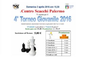 Torneo Four Handed GamesSabato 2 aprile alle ore 15:30 si svolgerà il primo torneo “Four Handed Games” presso la sede del Centro Scacchi Palermo. Si tratta di un torneo di quadriglia (regolamento in fondo all’articolo) composto da 11 turni con cadenza 3’+2″. Le squadre dovranno avere un elo complessivo < 3900 e l’iscrizione potrà avvenire per squadra o singolarmente ( gli abbinamenti verranno fatti in seguito). Il costo di partecipazione è di 5 euro a giocatore. Vi aspettiamo numerosi! Bando Torneo Four Handed Games Regolamento Torneo ]]>
