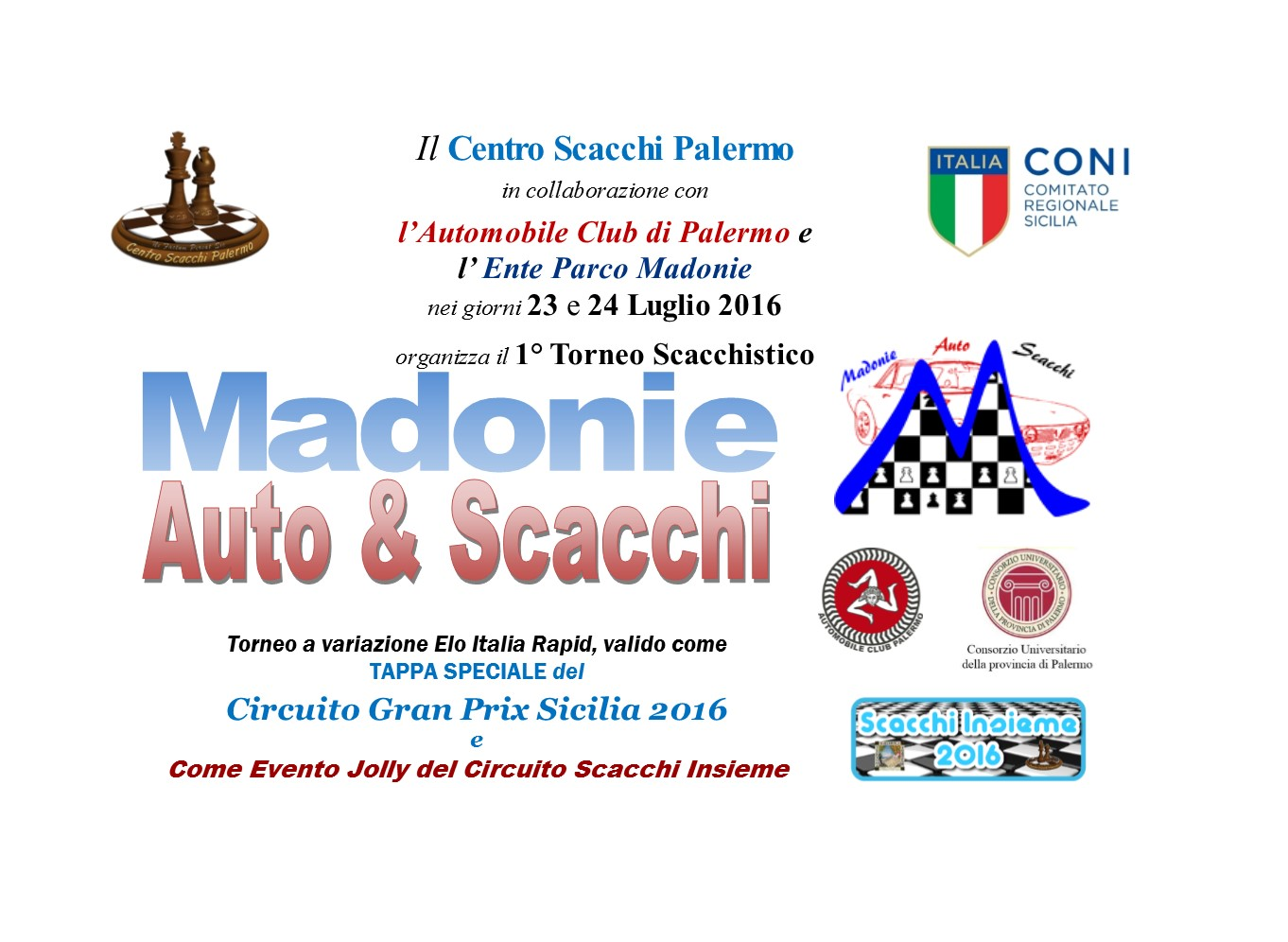 Nei giorni dal 23 al 24 luglio, presso Villa Sgadari di Petralia Soprana (PA) si svolgerà la prima edizione del Torneo Madonie Scacchi & Auto, iniziativa turistico-sportiva organizzata in collaborazione con l’Endas, l’Automobil Club e con il patrocinio dell’Ente Parco Madonie.