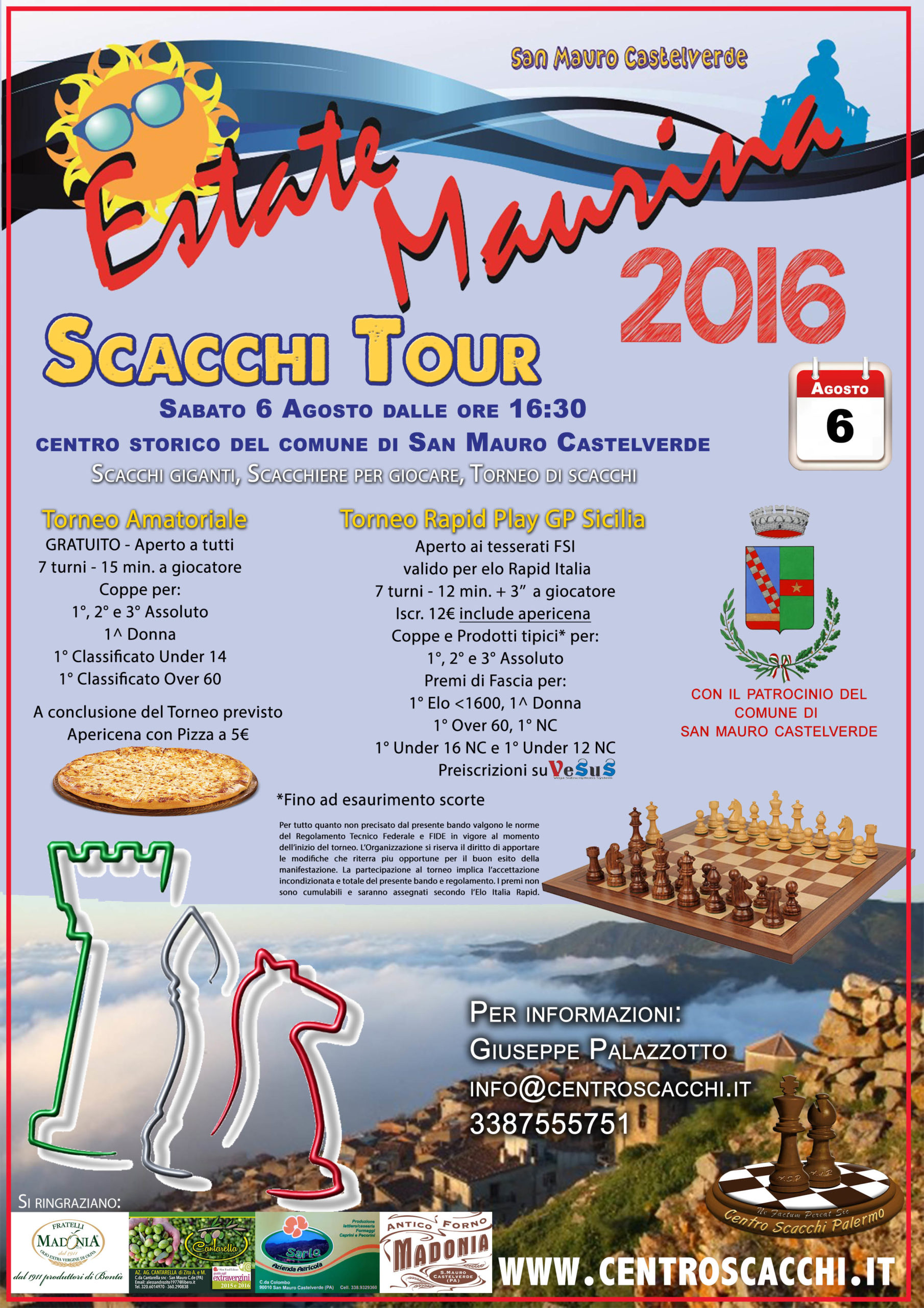 Centro Scacchi Palermo vi invita Sabato 6 Agosto alle ore 16:30 nel centro storico di San Mauro Castelverde per la seconda edizione della manifestazione “Scacchi