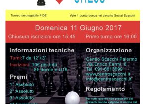 Nei mesi “caldi” dell’anno il Centro Scacchi Palermo aumenta, in controtendenza, le proprie attività. Tante infatti le proposte sportive in calendario: dalla didattica eccellente come i tre giorni con il Maestro Internazionale Bonafede, il Maestro Fide Alessandro Santagati e il Maestro Fabrizio Ganci (16/18 giugno), al Tempo d’Estate Scacchistico (al via giorno 19 giugno); dalla presenza alla manifestazione RegioniAmo Sicilia presso i Cantieri Culturali della Zisa (dal 12 giugno), sino a tutti gli eventi agonistici come la trasferta per la partecipazione al Campionato a squadre Giovanile Regionale di Marsala e ai Campionati Italiani Giovanili di Chianciano Terme, senza dimenticare tutti i tornei interni dell’associazione, che ci accompagneranno per tutti i mesi estivi, per giungere alla Palermo Comic Convention (22/24 settembre), evento che ci vede ogni anno alla Fiera del Mediterraneo tra cosplayer, fumetti e personaggi internazionali del cinema e della nona arte. Detto questo, domenica 4 giugno, abbiamo avviato tutte queste attività con il 5° torneo giovanile dell’associazione. Ventiquattro i partecipanti, con favorito d’obbligo Andrea Pennica, unico presente, insieme a Giulia Maresco, della fascia dei tredicenni del Centro Scacchi impegnati con gli esami di scuola media.