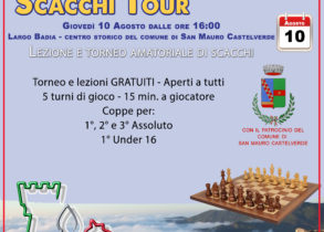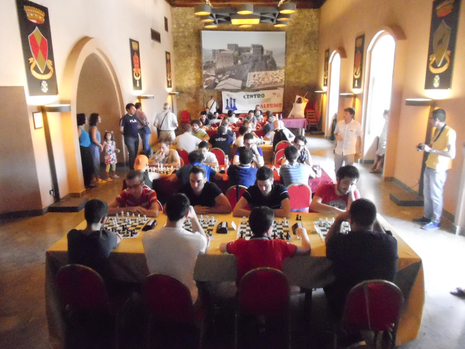 Nella splendida cornice del castello di Caccamo si è svolto, domenica 6 agosto, il Rapid Fide “Chess in Castle”. La manifestazione organizzata dall’asd Centro Scacchi Palermo e dall’associazione Turismosicilia con il patrocinio del Comune ospitante, ha visto la presenza di 43 giocatori con diversi maestri, C.M. e tante categorie nazionali. La suggestiva sala Prades è stata la sede degli otto turni di gara, arbitrati dall’A.N. Giuseppe Palazzotto. Si è trattato di un evento che ha ben condiviso la parte sportiva con quella turistico culturale, mixtio ricercata tanto spesso dalla nostra associazione e particolarmente valorizzata da quando è in atto la collaborazione con Turismosicilia il cui presidente, Angelica Tantillo, contribuisce sempre a mettere in evidenza le bellezze e la storia della nostra Terra. Subito dopo il pranzo infatti, scacchisti e accompagnatori, hanno potuto visitare il Castello al seguito di una “dama di corte” che ha condotto i visitatori nei meandri della antica struttura, passando dalle sale reali alle prigioni, dalla terrazza “Bellavista” alla sala degli stemmi. Tutti luoghi suggestivi pieni di storia e di leggende.