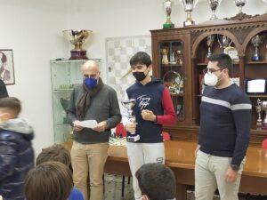 gruppo con 4,5 punti, formato da Marco Miosi, Massimo Li Vigni, Giulio Lo Presti (Primo Under 16) e Campanella Riccardo. Antonio Taormina con 4 punti vince il premio fascia elo <1500 e a Manfredi Romeo va il premio Under 12.
