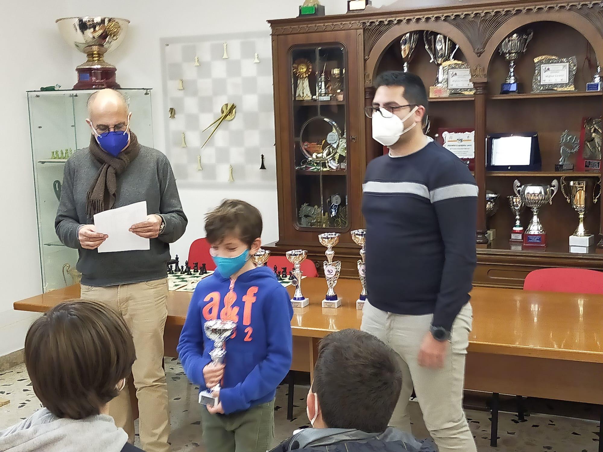 gruppo con 4,5 punti, formato da Marco Miosi, Massimo Li Vigni, Giulio Lo Presti (Primo Under 16) e Campanella Riccardo. Antonio Taormina con 4 punti vince il premio fascia elo <1500 e a Manfredi Romeo va il premio Under 12.