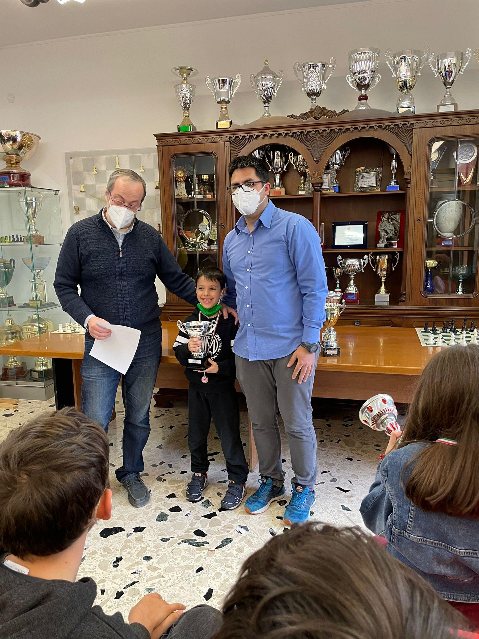 Al 4° posto, con 3 punti si piazza il piccolo Giorgio Pisciotta che vince la categoria Under 12, precedendo in ex aequo Valerio Pagano (1° Under 8) e Ermes Lombardo.
