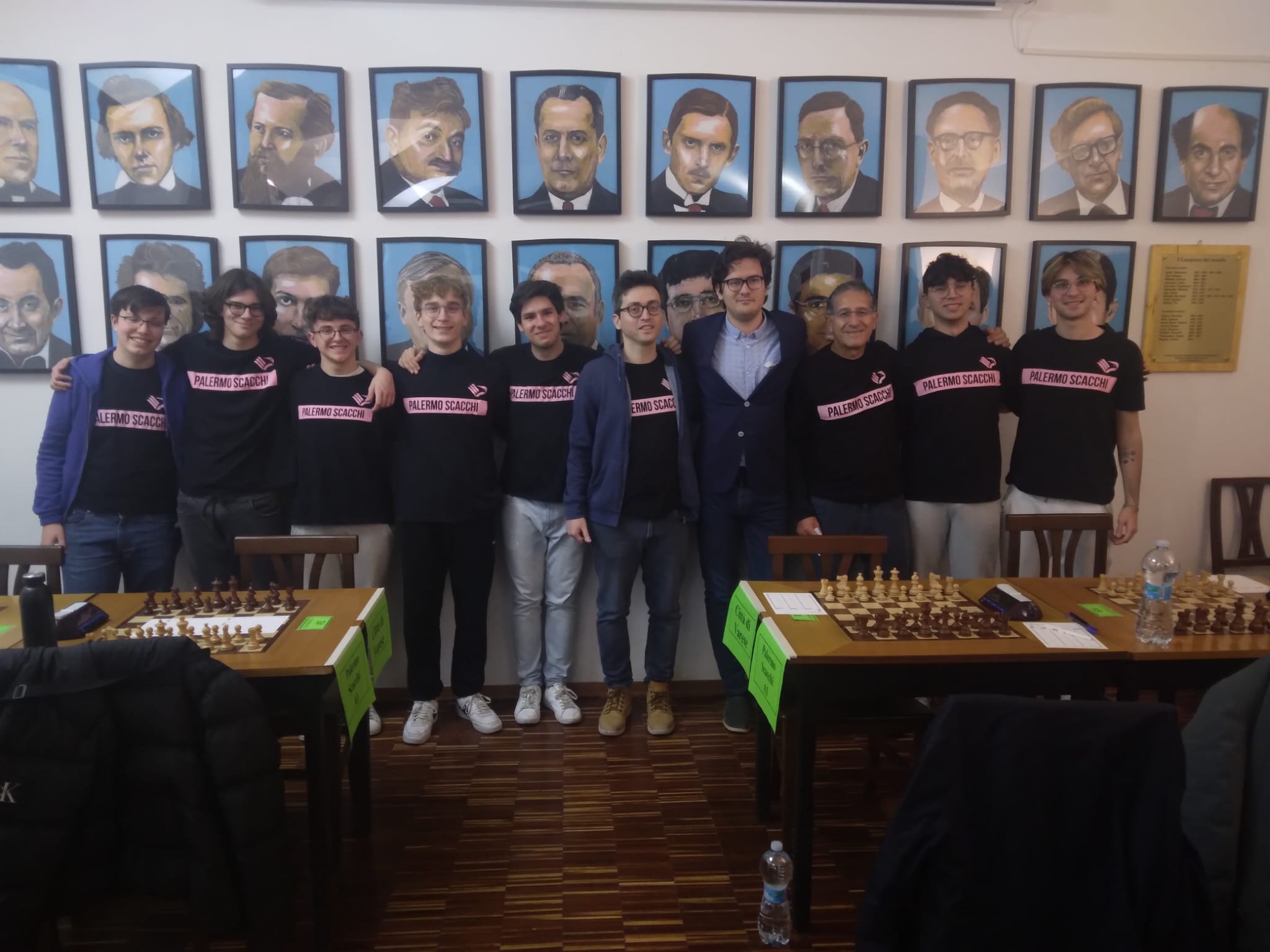 La squadra di A1, capitanata dal MF Andrea Amato, schierava in prima scacchiera il forte GM russo Nikita Petrov e poi, in ordine di scacchiera M Vittorio Cinà, MF Andrea Amato, CM Alessio Musso e CM Andrea Pennica, tutti nostri soci.
