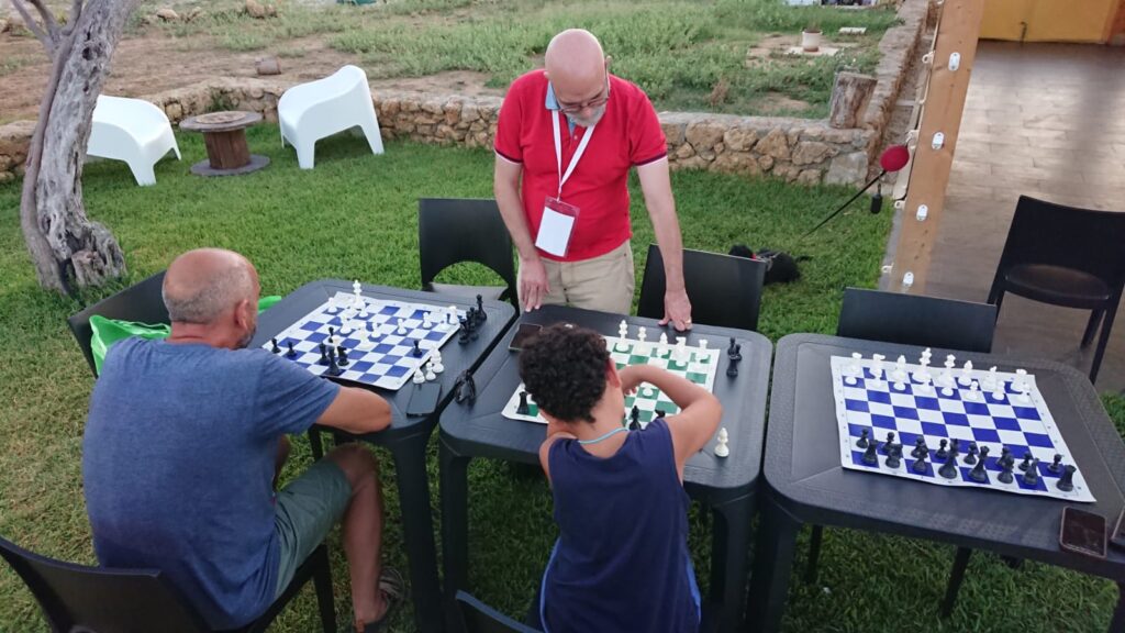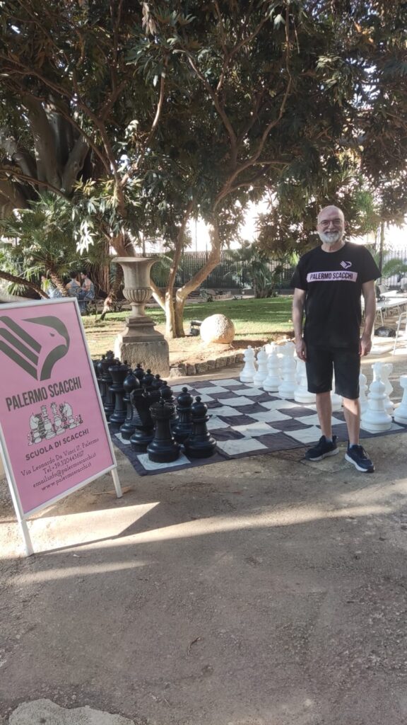 Vincenzo si è reso pure protagonista di una simpatica iniziativa giorno 17 luglio, sempre fuori sede e per la precisione a Carini presso il Villaggio Gastronomico, con una serata di Scacchi e Gastronomia che, vista la partecipazione, e la disponibilità dei titolari del Villaggio, sarà ripetuta giorno 1 agosto.